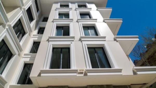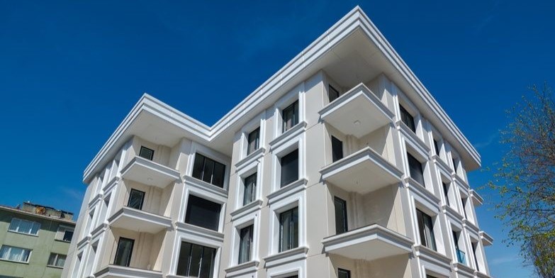 Yesilkoy Residence project facade cladding is made with gfrc / grc (glass fibre reinforced concrete) by GRC Plus (Fiberton brand).